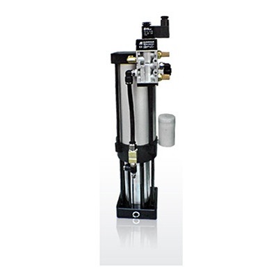 增壓缸是將一油壓缸與增壓器作一體式相結(jié)合,利用增壓器的大小不同受壓截面面積之比,因?yàn)閴毫Σ蛔儯?dāng)受壓面積由大變小時(shí),則壓強(qiáng)也會(huì)隨大小不同而變化的原理,從而達(dá)到將氣壓壓力提高到數(shù)十倍的壓力效果,以預(yù)壓式增壓缸為例:當(dāng)工作氣壓壓在液壓油表面時(shí),液壓油會(huì)壓縮空氣作用而流向預(yù)壓行程腔,此時(shí)液壓油會(huì)迅速推動(dòng)式件作位移,當(dāng)工作位移遇到阻力大于氣壓壓力時(shí)缸則停止動(dòng)作,此時(shí),增壓缸的增壓腔因?yàn)闅鈩?dòng)信)動(dòng)作,開(kāi)始增壓從而達(dá)到成型產(chǎn)品的目的。 氣液增壓缸是結(jié)合是氣缸和油缸優(yōu)點(diǎn)而改進(jìn)設(shè)計(jì)的,液壓油與壓縮空氣嚴(yán)格隔離,缸內(nèi)的活塞桿接觸工作件后自動(dòng)啟程,動(dòng)作速度快,且較氣壓傳動(dòng)穩(wěn)定,缸體裝置簡(jiǎn)單,出力調(diào)整容易,相同條件下可達(dá)到油壓機(jī)之高出力,低損耗,安裝容易,所占用的空間小,故障少無(wú)溫升之困擾,壽命長(zhǎng),噪聲小,等核心特性。 1、預(yù)壓式增壓缸:當(dāng)工作氣壓壓在液壓油表面時(shí),液壓油會(huì)因壓縮空氣作用而流向預(yù)壓行程腔,此時(shí)液壓油會(huì)迅速推動(dòng)軸心作位移,當(dāng)工作位移遇到的阻力大于氣壓壓力時(shí)預(yù)壓軸心則停止動(dòng)作,此時(shí),增壓缸的增壓段因?yàn)闅鈩?dòng)壓力動(dòng)作,增壓軸心亦開(kāi)始作位移動(dòng)作,并擠壓預(yù)壓缸體里的低壓油,使之增壓從而產(chǎn)生強(qiáng)大推力的效果。 2、直式增壓缸:當(dāng)工作氣壓壓在增壓段活塞表面時(shí),活塞會(huì)因壓縮空氣作用而流向油腔,此時(shí)液壓油會(huì)迅速推動(dòng)軸心作位移,此時(shí)軸心移動(dòng)的距離(行程)為高壓力行程(增壓行程)